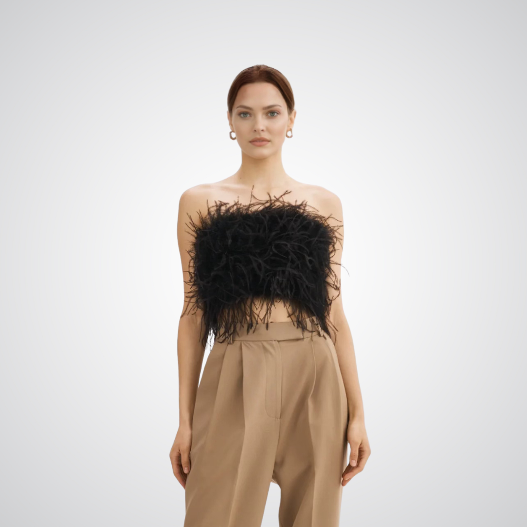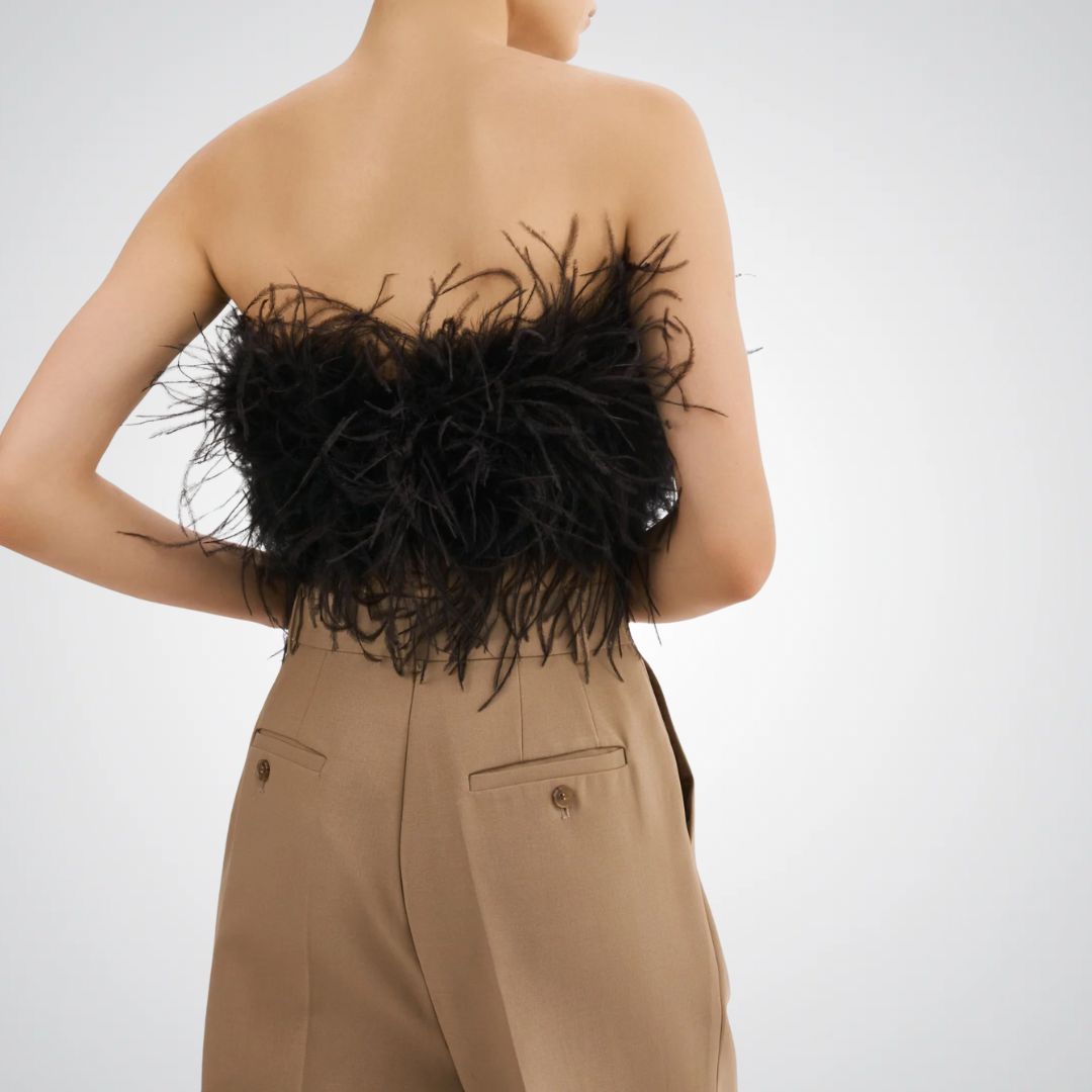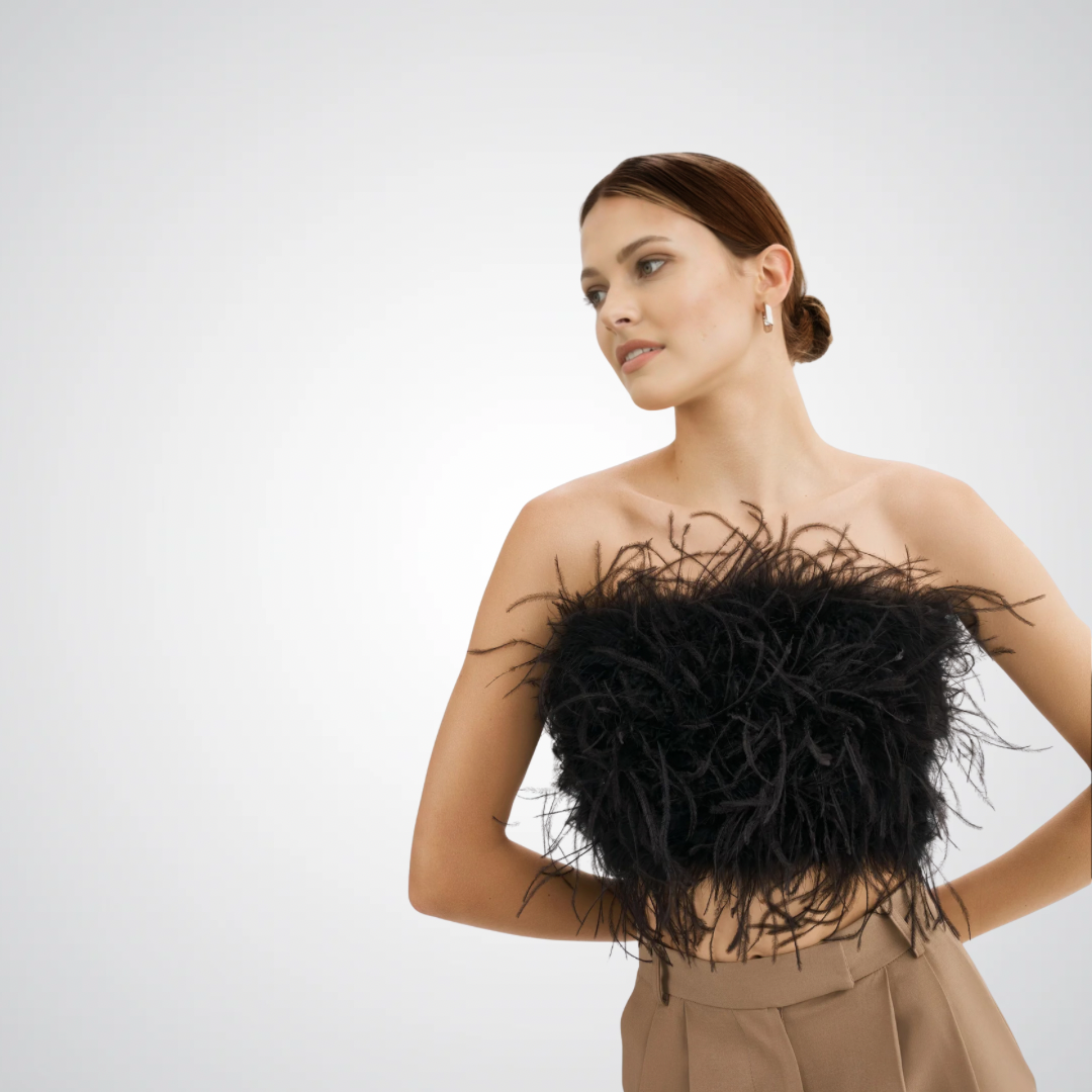 Fluffy Ostrich Feather Bandeau Top
